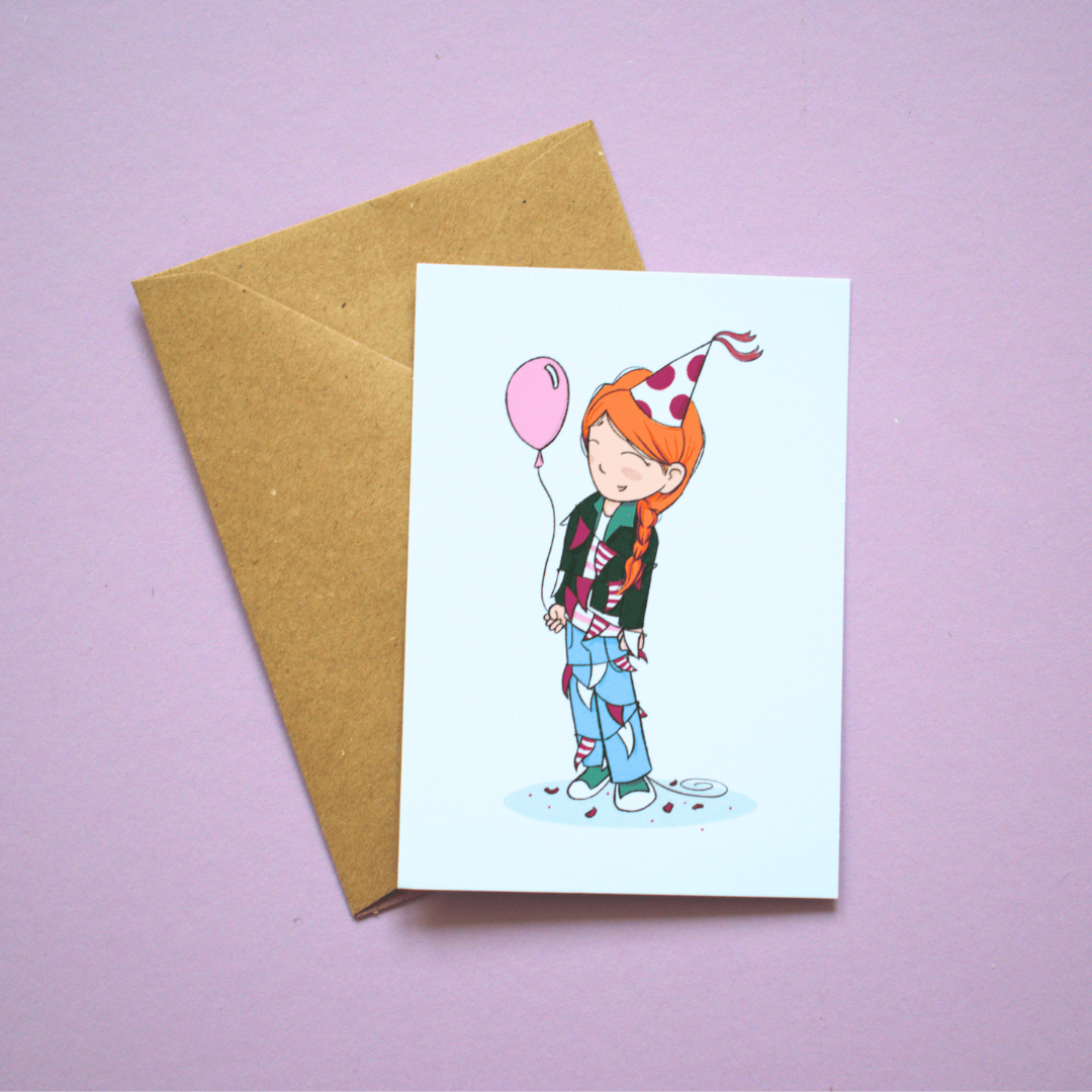 Maak kennis met Stella: een onhandig meisje dat zich op de meest grappige manieren uit de gekste situaties redt. Van vastraken in de slingers tot het kwijtraken van allerlei snoep en bloemen, met haar gaat er altijd wel iets mis. De kaarten van Over the Moon Studio by Luna brengen haar leukste avonturen tot leven - luchtig, herkenbaar en gewoon heel leuk om te sturen (of te houden).